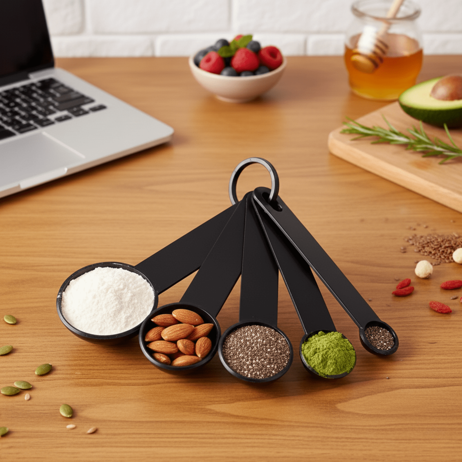Dosez facilement vos protéines, vos compléments alimentaires, votre café moulu, votre matcha, vos épices... Bref, ce trousseau ergonomique de cuillères de mesure vous facilitera la vie au quotidien.